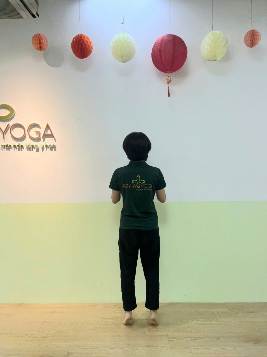 - Đứng dựa lưng vào tường, hai chân rộng bằng vai